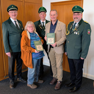 Bürgermeister Stefan Streit merkte man diesen besonderen Moment der Übergabe an. Begeistert erklärte er „Toll, jetzt verfügen wir erstmalig über eine systematische Aufbereitung von Zeugnissen des örtlichen Schützenwesens. Ich bin schon jetzt sehr gespannt auf interessante Einblicke in vergangenes Zeitgeschehen.“ Es selbst hatte im vergangenen Jahr alle sechs städtischen Schützenverein besucht und ist dem Schützenwesen besonders verbunden.